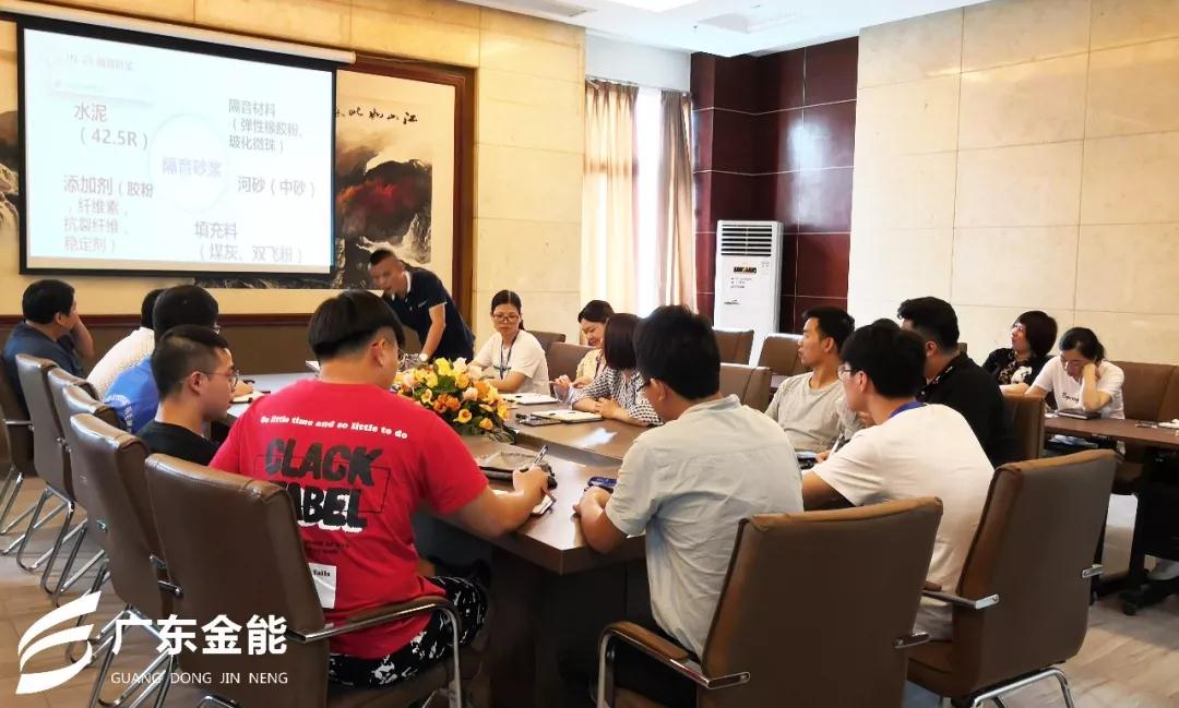 第三期知識培訓的內容是圍繞JN-17透明反射隔熱材料和JN-25隔音砂漿,本次產品專題培訓由周講師開講,主要從產品概述、產品特點、適用範圍、檢測標準、施工方法、施工流程、用量計算等。