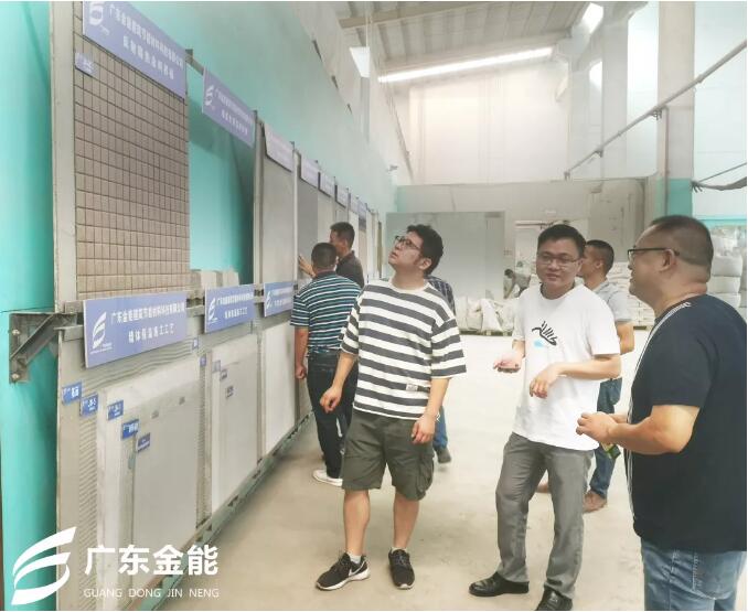 為了體現我司產品的研發能力和產品製造實力,讓客戶了解產品的生產工藝,新城控股公司代表與張總走進工廠參觀一係列產品的樣板展示,感受材料的施工厚度、抗壓強度、觀感等。