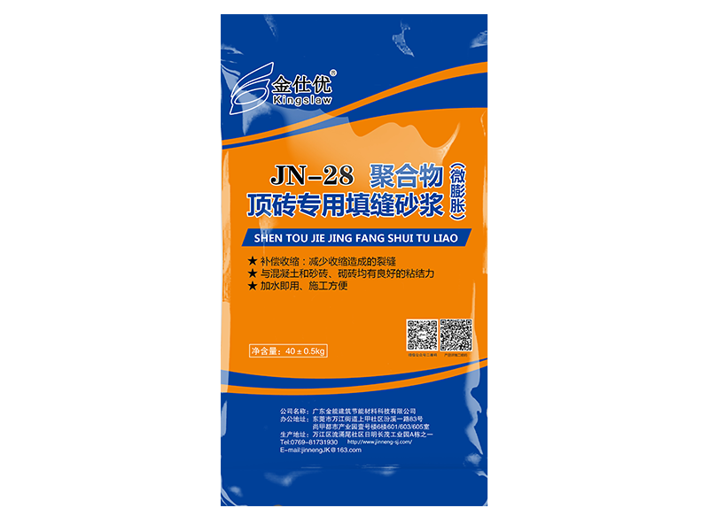 JN-28 聚合物頂磚專用填縫砂漿(微膨脹)是一種高質量聚合物水泥基單組份頂磚填縫砂漿,適用於混凝土橫梁與砂磚、加氣磚之間的縫隙填充。
