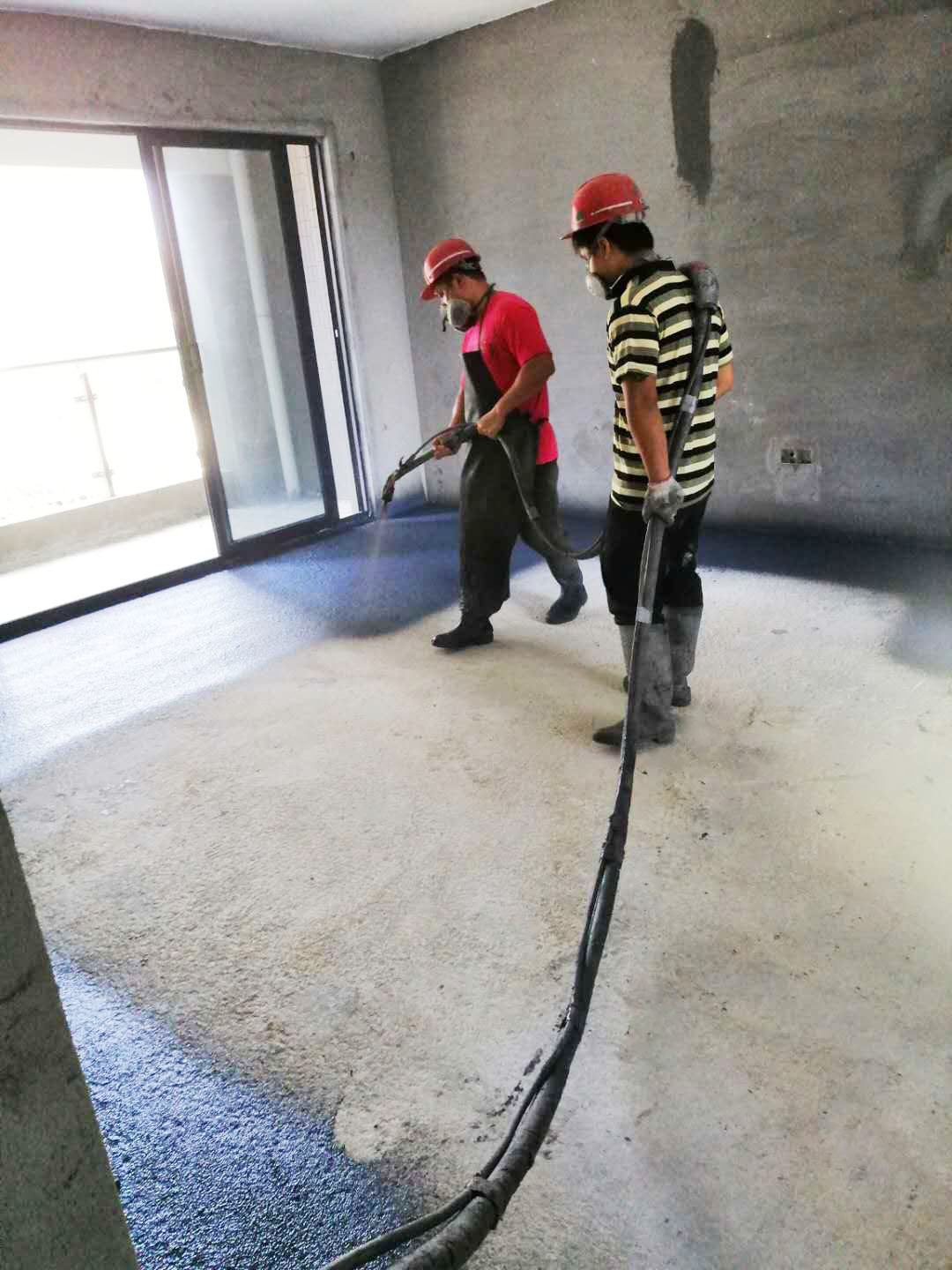 5.噴塗後的隔音塗料幹燥維護,如果有需要,固化72小時後可進行修整、裝飾等其他工序。